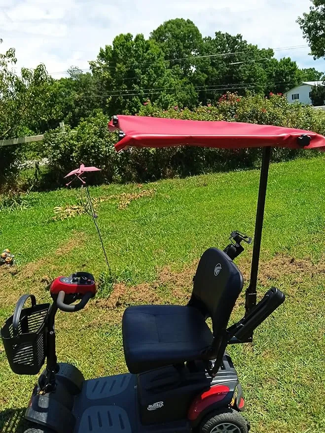 The mobility Scooter Roof will shade you from the sun. It is made out of heavy duty one inch by one inch square steel stock. The roof is made out of marine vinyl. It is very easy to assemble and disassemble. My wife and I use mobility scooters and love our roofs because it gives us shade when we go on our paved trail adventures. Our enhanced design reduces the amount of swaying.